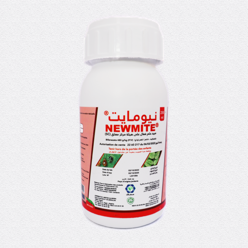 نيومايت يحتوي على بيفينازات 48%. مبيد غير جهازي ذو مفعول ملامسي قوي ومدة تأثير طويلة، يتحكم في جميع مراحل العناكب