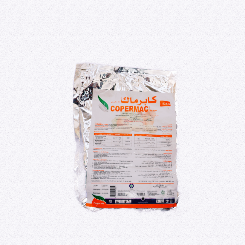 كوبرماك مبيد فطري ورقي ذو خاصية وقائية يحتوي على أوكسيكلوريد النحاس لذلك يجب استخدامه قبل ظهور أبواغ الفطر يستعمل للقضاء على اللفحات, البياض الدقيقي و أمراض التفحم و البكتيريا في الطماطم البطاطا و الكروم و الاشجار المثمرة